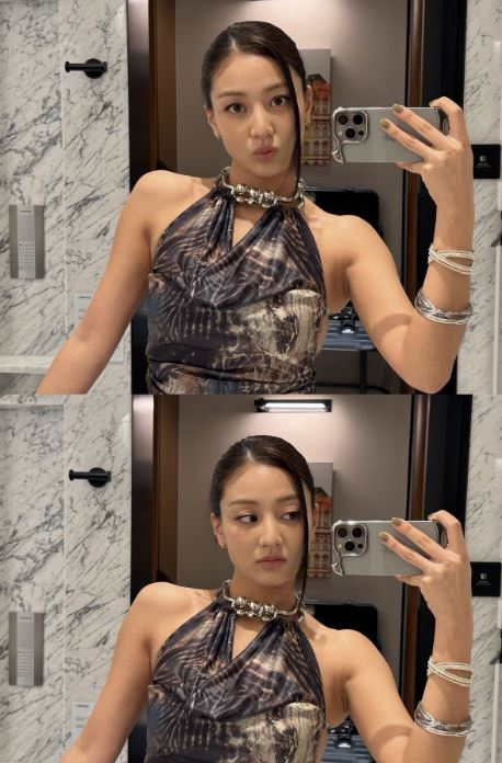 또한 지효는 거울에 비친 자신의 모습을 핸드폰 카메라에 담기도. 탄탄한 보디라인과 화려한 이목구비가 특히 이목을 집중시킨다.