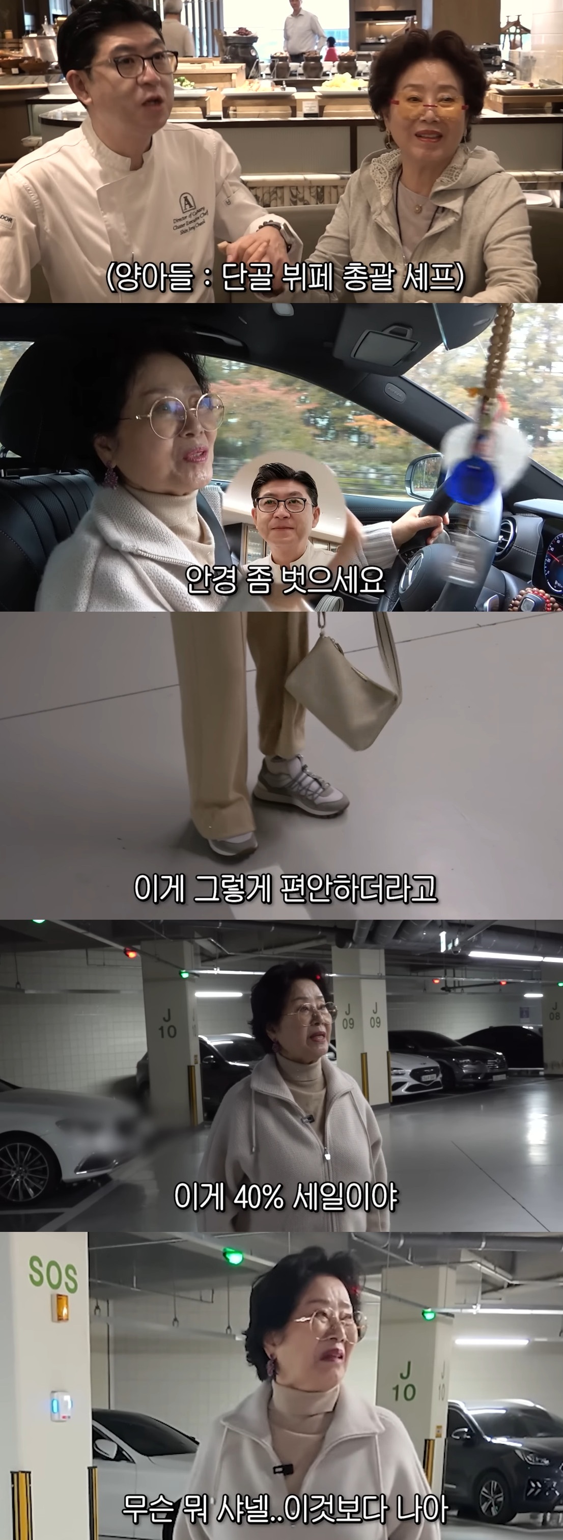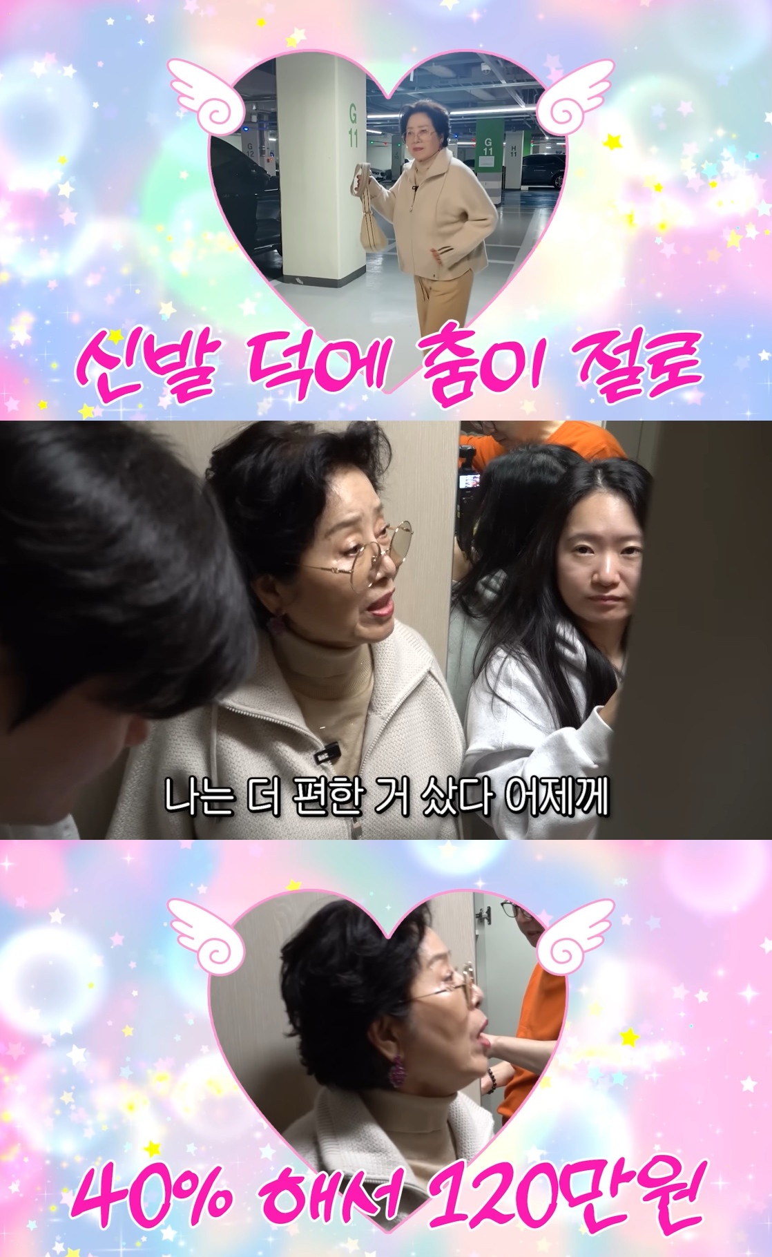 선우용여는 "이거다. 편하더라. 40% 세일해서 120만 원이다. 이백몇십만 원에 40% 세일해서 120만 원이다"라며 고가의 가격을 공개해 모두를 놀라게 했다.